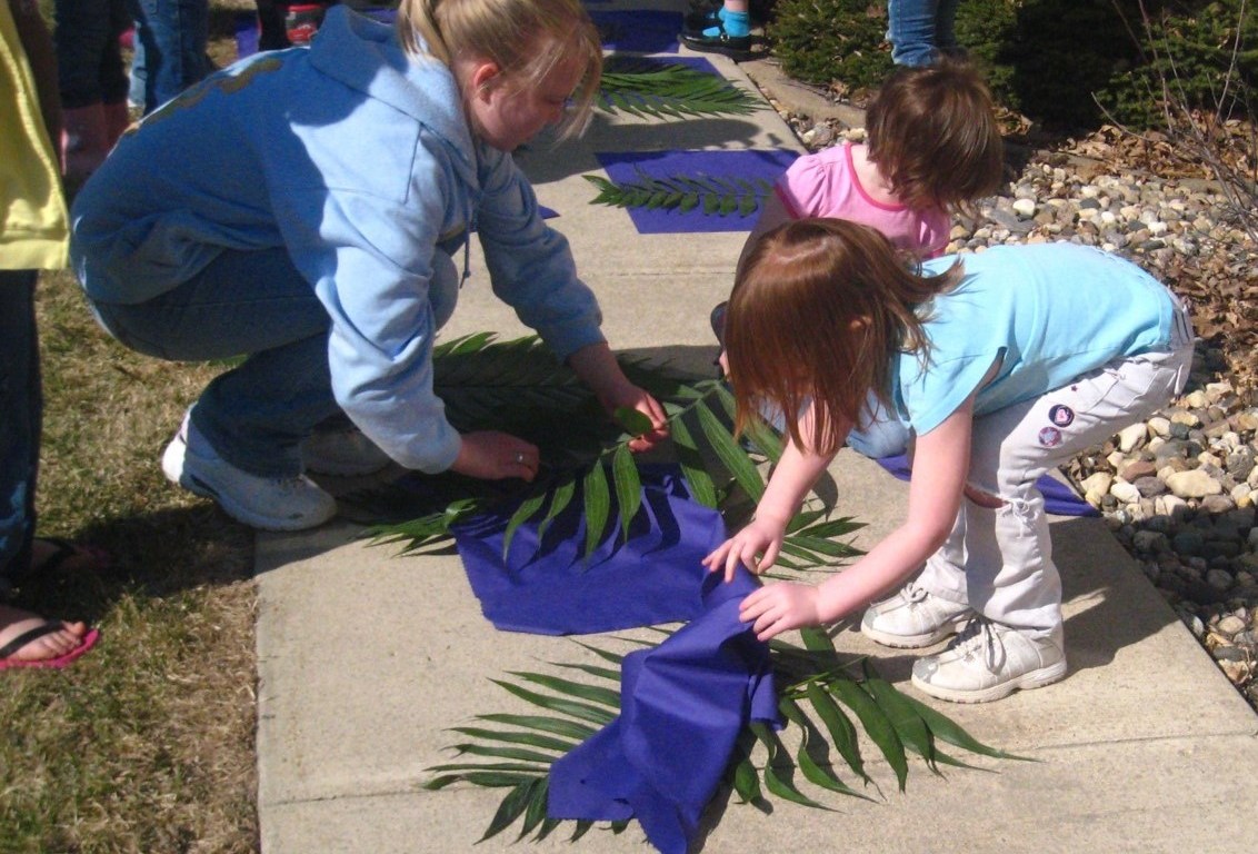 Most of them can remember the Holy Week stations of the cross from last year, when they enacted the story of Jesus’ entry into Jerusalem and waved the palm branches just as the people did all those years ago.  But it is only five days from Palm Sunday to Good Friday.  We talk about how quickly we can go from welcoming Jesus to being mean.  We can be so good, but then turn around and be angry or naughty.  During Lent we ask Jesus to give us steady, loving hearts.  We burn the palms and wear the ashes to help us get started in this process.