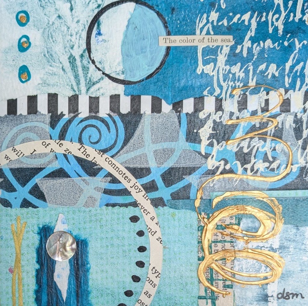 These days I am having a great time making art. Upon retiring over three years ago, I happened to see an ad for a mixed media class that only cost $15. I figured I didn’t have much to lose, and it looked like fun. I clicked on the ad, followed the prompts, and paid my fee. I received a link to the class in my email, and the world of online art classes was revealed to me. I started painting and tearing and gluing, and I haven’t looked back. Now I have an art room filled with supplies, dozens of creations displayed and stacked, and an insatiable curiosity about media and techniques.